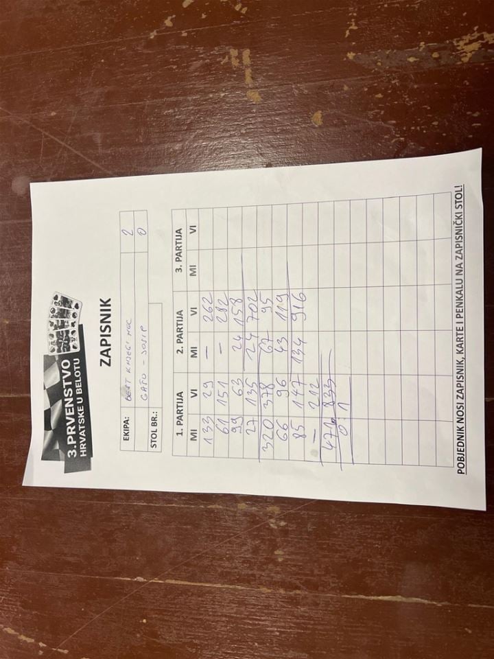-Priprema za ovo prvenstvo trajala je tri mjeseca. Puno smo uložili u digitalni marketing i objave u medijima, a isto tako pokrenuo sam WhatsApp grupu koja broji 500 igrača belota iz cijele Hrvatske, što mi je olakšalo posao. Prezadovoljan sam rekordnim brojem parova, ali i kvalitetom partija koje su bile kvalitetne i zanimljive. Raduje me da je sve proteklo u prijateljskoj atmosferi. Ovo je dobra podloga za četvrto PH iduće godine – izjavio nam je Zdenko Vidović glavni organizator PH u belotu.