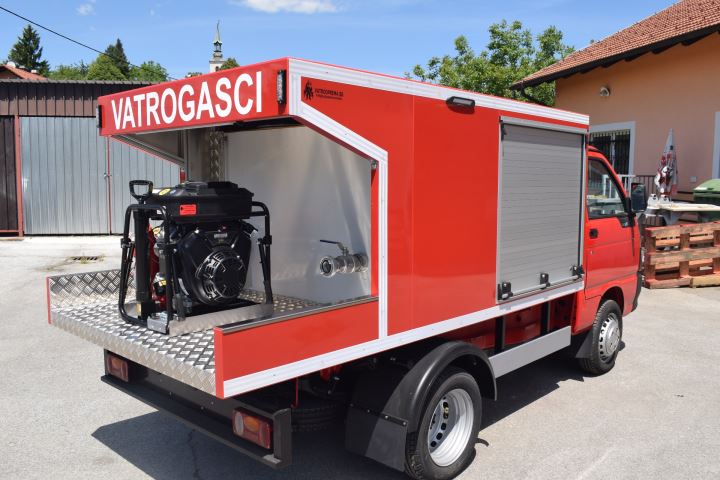 Naime, u DVD-u Slatina došli su na ideju da u vatrogasno vozilo, koji bi u potpunosti zadovoljavalo njihove potrebe na otoku sa puno uskih ulica, pretvore vozilo Piaggio. Vozilo je stiglo kao malo teretno sa tovarnim prostorom, koji je u Vatroopremi SD pretvoren u nadogradnju istovjetnih gabarita kao i postojeći sanduk, dimenzija 2800 mm x 1500 mm x 1050 mm. Vozilo ima sada spremnik vode dimenzija 1300x650x600 mm i zapremine 650 litra, a izrađen je od stakloplastike. Uz svu potrebnu i traženu opremu tu je i vatrogasna pumpa Rosenbauer – Otter, s motorom Briggs & Stratton snage 18 HP pri 3600 rpm. ''Iako je Corona kriza ostavila traga na našem poslovanju uspješno smo odradili dva projekta za DVD Rogoznica i privodimo kraju ovo malo navalno vozilo za naručitelja DVD Slatine. Nadamo se da će nam epidemiološka situacija ubrzo dozvoliti i nastavak suradnje s našim partnerima iz Austrije s kojima radimo na razvoju vatrogasnih vozila za tržište istočne Europe.'' – rekao nam je Željko Habazin iz Tvrtka Vatrooprema SD. Tako se još jednom pokazalo da je ovo mala tvrtka za velika djela, koja se s pravom nada da će dobiti priliku za prezentaciju i na stranom tržištu.