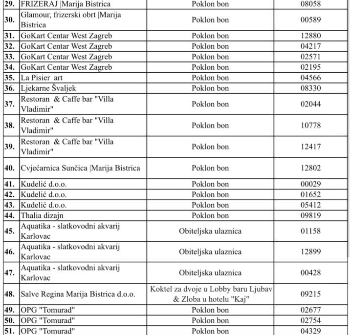 Donosimo i popis svih nagrada sa dobitnim brojevima