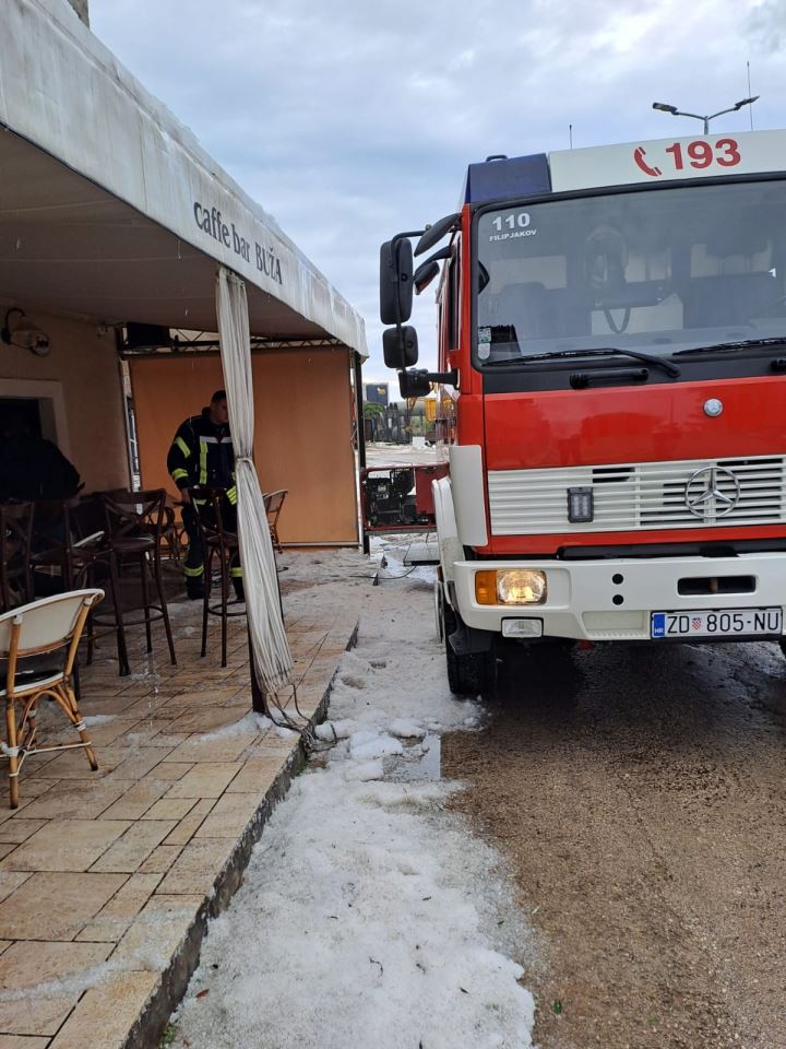 Lokalni DVD objavio je da su ranije jutros četiri člana njihova društva i dva vatrogasna vozila sudjelovala na intervencijama ispumpavanja vode iz obiteljskih kuća i ugostiteljskog objekta te otvaranja vrata stana zbog poplave. "Riva je bila zatrpana krupom, a zahvaljujući radnicima i strojevima komunalnog pogona općine, ista je očišćena. Bravo, ekipa", napisali su na Facebooku iz Dobrovoljnog vatrogasnog društva Sv. Filip i Jakov.