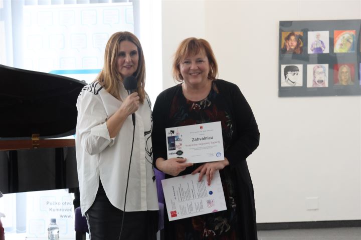 Izložba “Autoportret” u organizaciji Škole za umjetnost, dizajn, grafiku i odjeću Zabok međunarodnog je karaktera, a tim je povodom ravnateljica ŠUDIGO-a Božica Šarić uručila zamjenici župana Jasni Petek zahvalnicu Krapinsko-zagorskoj županiji za 10 godina sudjelovanja i iznimnog doprinosa u realizaciji projekata/ izložbi povodom Noći muzeja.