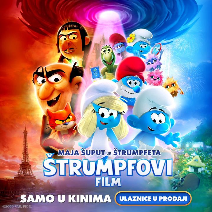 Ovo štrumpfastično putovanje prošarano je obiljem zaraznih pjesama i dinamičnih plesnih točaka, u kojima će cijelo selo Štrumpfova pokazati pravo značenje zajedništva, optimizma i vjere u uspjeh. Kroz neočekivane preokrete i komične situacije, ova družina dokazuje da se i najveće prepreke mogu svladati uz malo magije, dobre volje i velikog plavog srca. Savršeni spoj humora, sjajne glazbe i fantastične animacije čini ovaj film pravom poslasticom za gledatelje svih generacija. Početak projekcije je u 18.30 sati, cijena karte je četiri eura, a blagajna se otvara pola sata prije projekcije.