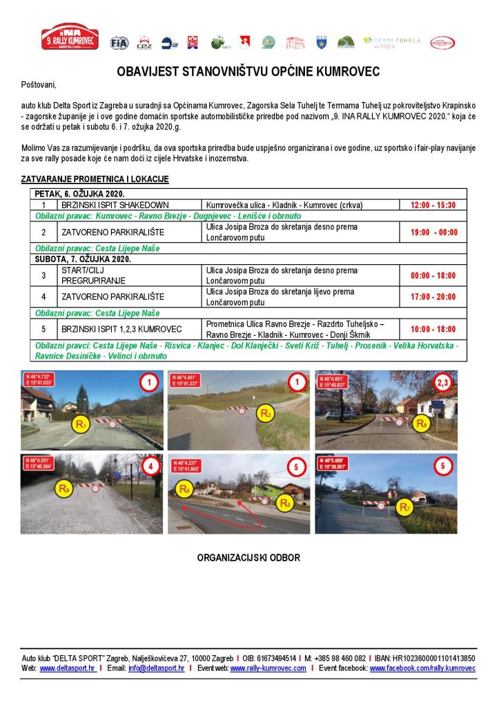 „9. INA RALLY KUMROVEC 2020.“ će se održati u petak i subotu 6. i 7. ožujka 2020. godine, tako da će tih datuma vrijediti posebna regulacija prometa u Zagorskim Selima i Kumrovcu