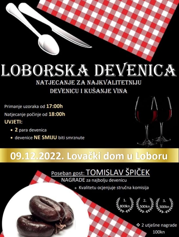 Riječ je o natjecanju u spravljanju najkvalitetnije devenice, a bit će organizirano i kušanje vina. Ove će godine natjecanje pratiti budno oko proslavljenog zagorskog chefa Tomislava Špičeka koji stiže u Lobor kao gost.
