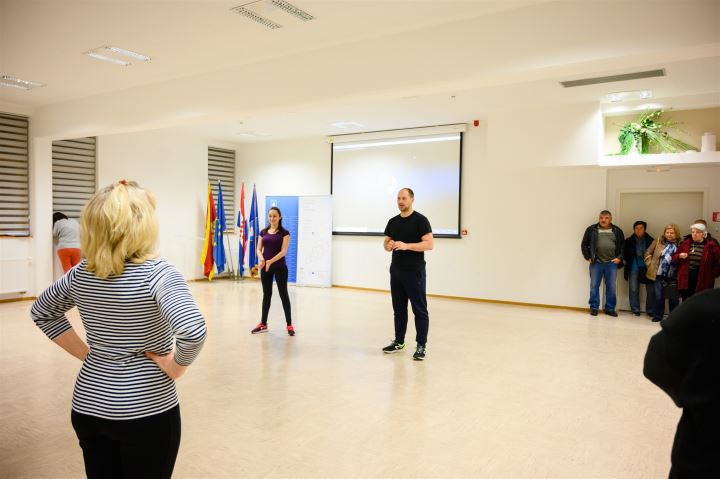 Zahvaljujući velikom odazivu, aktivnosti u sklopu projekta „Prevencija i liječenje demencije“ nastavljene su i u ožujku. Ovog je utorka, 3. ožujka, održano predavanje pod nazivom „Liječenje uznapredovale demencije“. Psihijatrica Ivana Stinčić Roksandić koja radi u OB Zabok, polaznicima predavanja pobliže je pojasnila kakva je klinička slika osobe koja boluje od Alzheimerove bolesti u sva 3 stadija te koji su bihevioralni i psihički simptomi demencije i na koji se način liječe ponašajni i psihički simptomi u oboljelih. Nakon predavanja, kao što je to već postalo uobičajeno, uslijedila je kratka okrijepa i druženje, a potom i priprema za prvu plesnu radionicu pod vodstvom profesionalnog plesača Luke Halića. Pripremivši plesnu koreografiju primjerenu osobama starije životne dobi, Luka je, uz pomoć svoje supruge Jelene, vrlo spretno potaknuo prisutne na ples. Ne samo da je zabavan, ples je odličan način za uvrštavanje tjelovježbe u tjednu rutinu. Uz to, smanjuje se i društvena izolacija osoba jer se na plesu mogu družiti s drugim ljudima svoje dobi i zaista sudjelovati u aktivnosti. Učenje i pamćenje novih i raznolikih koraka aktivira mnoge živčane putove u mozgu, održavajući ga snažnim, aktivnim i zdravim. Vježba pruža dobar protok krvi u mozak, a također se smatra da potiče rast i preživljavanje stanica mozga, što je neophodno u zaštiti od razvoja demencije. Također, ples dokazano podiže razinu endorfina u tijelu te nas razbuđuje iz depresivnog stanja.