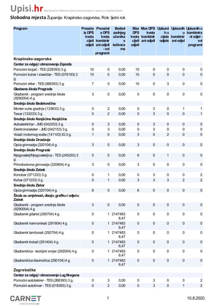 21. kolovoza 2020. godine kandidati se rangiraju sukladno navedenim listama prioriteta prema gore opisanim kriterijima.