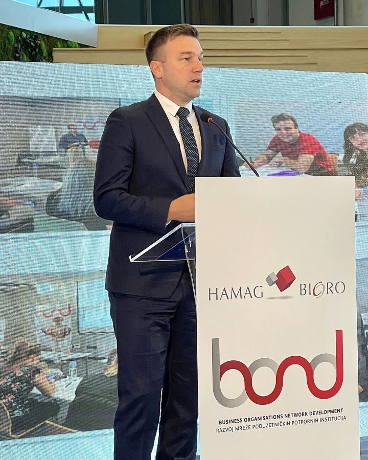 Konferenciju je uvodnim obraćanjem otvorio predsjednik Uprave HAMAG-BICRO-a Vjeran Vrbanec koji je pritom izjavio: „Povezivanjem poduzetničkih potpornih institucija iz svih dijelova Hrvatske u Mrežu BOND i standardizacijom njihovih usluga, osigurali smo ujednačen pristup informacijama svim našim poduzetnicima. Kroz ovaj projekt im je omogućena strukturirana podrška, ali i pristup stručnim znanjima kroz mrežu mentora te međusobna komunikacija i transfer znanja putem razvijene digitalne platforme. U želji za decentralizacijom usluga Agencije, otvorili smo 20 ispostava u svakoj županiji i učinili ih dostupnima poduzetnicima u svakom kutku Lijepe naše.“