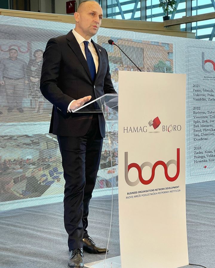 Ante - Janko Bobetko, zamjenik predsjednika Uprave HAMAG-BICRO-a istaknuo je: „HAMAG-BICRO je provedbom projekta BOND podigao razinu kompetencija poduzetničkih potpornih institucija, razvio edukacijske materijale i nove usluge koje će poduzetnicima te onima koji to žele postati olakšati realizaciju njihovih poslovnih poduhvata. Certifikacijom članova Mreže BOND osigurava se implementacija novih znanja i usluga na čitavom području Republike Hrvatske.“