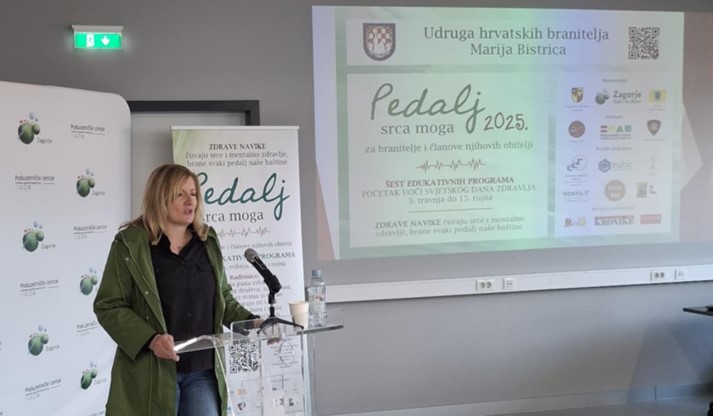 Već sljedeće nedjelje, 13. travnja na rasporedu je druga edukativna radionica u sklopu projekta „Pedalj srca moga“. Program počinje u 10.30 sati, a održava se u Hotelu Kaj u Mariji Bistrici., U dvosatnoj radionici „U ZDRAVOM DRUŠTVU, ZDRAVI UM“, svoja će stručna znanja, savjete i preporuke na temu zdravih navika te prevenciju bolesti krvožilnog sustava i mentalnog zdravlja, braniteljima i članovima njihovih obitelji, prenijeti vrlo uspješna kreatorica i inicijatorica stručnih i društveno važnih programa događanja, predsjednica Udruge STAV iz Marije Bistrice, neurologinja, doc.dr.sc. Sanja Kovačić.