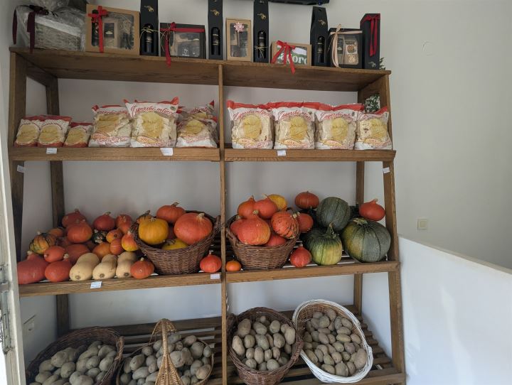 Uz proizvode iz njegova vlastitog OPG-a, koji uključuju toplo i hladno prešano bučino ulje, brašno i koštice od buče, a u novije vrijeme vrhunsko suncokretovo i orahovo ulje te dehidriranu buču za juhu, na policama će se naći i proizvodi još nekoliko lokalnih OPG-ova iz Zagorja, poput OPG-a Vjeran Lež, Pčelarstva Marina i Josip Krog i OPG-a Bedek.