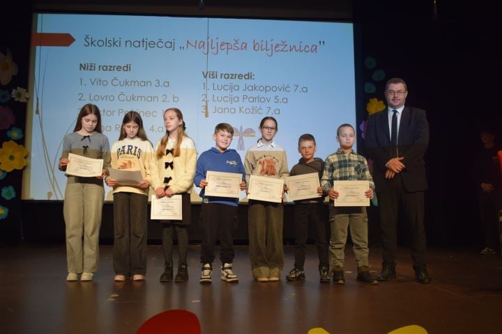 Najboljima od najboljih, odnosno onima koji su na županijskim razinama osvojili jedno od prve tri mjesta dodijeljene su zahvalnice, no kroz program psihologinja u školi Vesna Tomorad pobrojala je i brojne druge uspjehe. Ana Juras, Mila Pavlović i Patrik Boc osvojili su prvo mjesto na županijskoj razini natjecanja u znanju i kreativnosti ''Čitanjem do zvijezda'', Lucija Jakopović i Klara Hajnić bile su pobjednice Županijskog natjecanja u Čitanju na glas, s tim da je Lucija bila treća na državnoj razini. Mentorice su bile Jasna Milički i Melita Petriš Banovec.