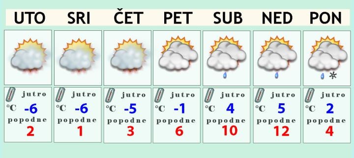 Dok će se ovih dana neki buditi na temperaturama od -6°C, naš prognostičar Kristijan Božarov u tjednoj vremenskoj prognozi najavio je da nas krajem tjedna očekuju temperature od čak 12°C.