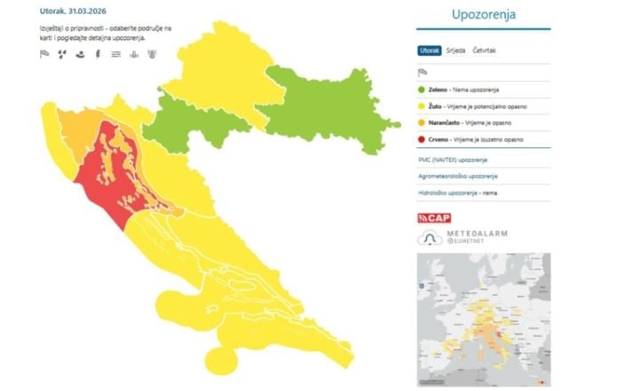 Stižu žestoki udari vjetra, DHMZ izdao crvene alarme: 'Zaštitite se, rizik je velik'