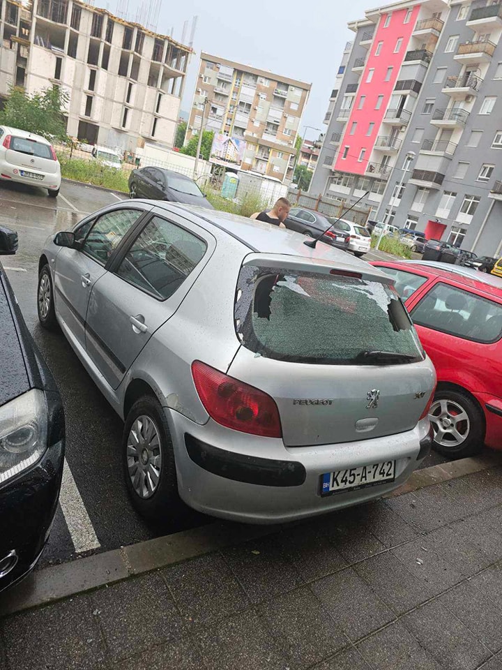 Tamo je pala jaka tuča koja je oštetila automobile i čini se da će nastala značajna šteta.