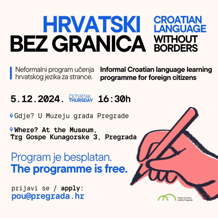 Pučko otvoreno učilište Pregrada započinje s provođenjem neformalnog programa učenja hrvatskog jezika pod nazivom „Hrvatski bez granica/Croatian language without borders“.