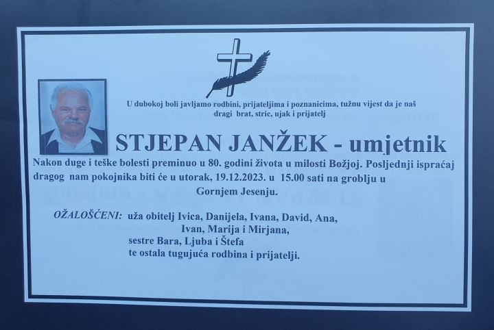 Posljednji ispraćaj Stjepana Janžeka bit će u utorak, 19. prosinca, na groblju u Gornjem Jesenju!