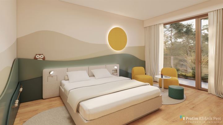 Novi hotel u Termama Olimia bit će u potpunosti prilagođen obiteljima. U njemu će se nalaziti 146 obiteljskih soba, razne igraonice, prostori za zabavu i kreativne aktivnosti te će biti povezan s ponudom Wellnessa Termalija Family Fun. Do obiteljskog kupališta vodit će grijani panoramski hodnik s direktnim ulazom u bazene. Hotel će biti smješten uz šumu i imat će vlastiti prilaz s glavne ceste.