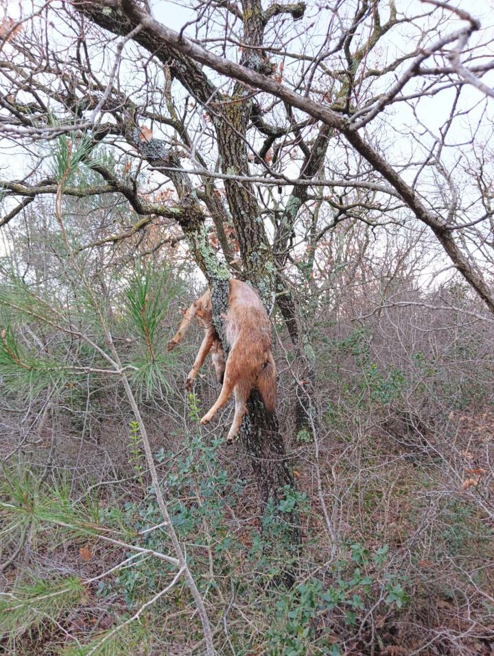 Riječ je o fotografijama divlje mrtve divlje životinje na stablu koje su objavljene na Facebook stranici Ranger- Čuvari prirode Hrvatska uz rečenicu: 'Kako vas nije sram! Kakvi ste vi to ljudi?'.