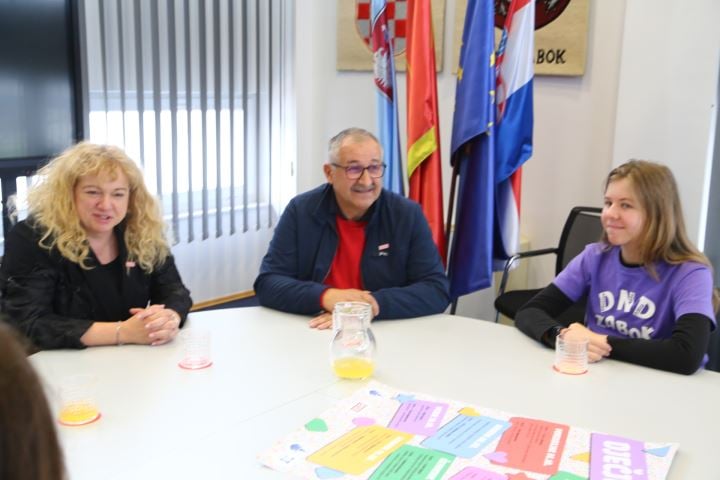 Gradonačelnica Grada Zaboka Valentina Đurek imala je danas veseo i živahan sastanak u Gradskoj vijećnici. U posjet su joj stigli predstavnici Dječjeg gradskog vijeća i Društva Naša djeca Zabok.