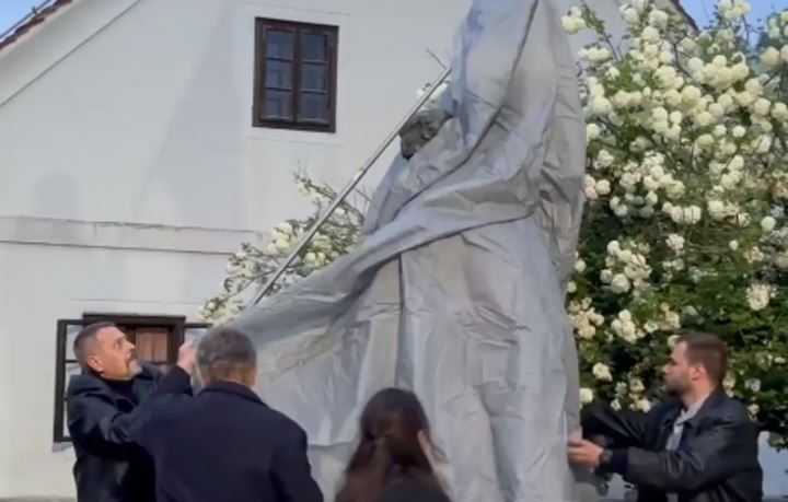 VIDEO: Članovi Domovinskog pokreta u Kumrovcu ceradom prekrili Titov kip