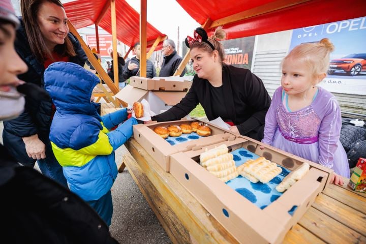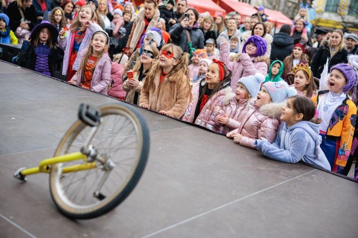 Djecu je zabavila predstava s cirkuskim elementima u kojoj su i sami mogli sudjelovati na pozornici, a posebno je oduševljenje izazvala i djevojka na štulama. Posebno oduševljenje izazvale su maskote - Minne, Mickey, Stitch, Labubu i Baby Boss koji su s mališanima neumorno plesali i fotografirali se.