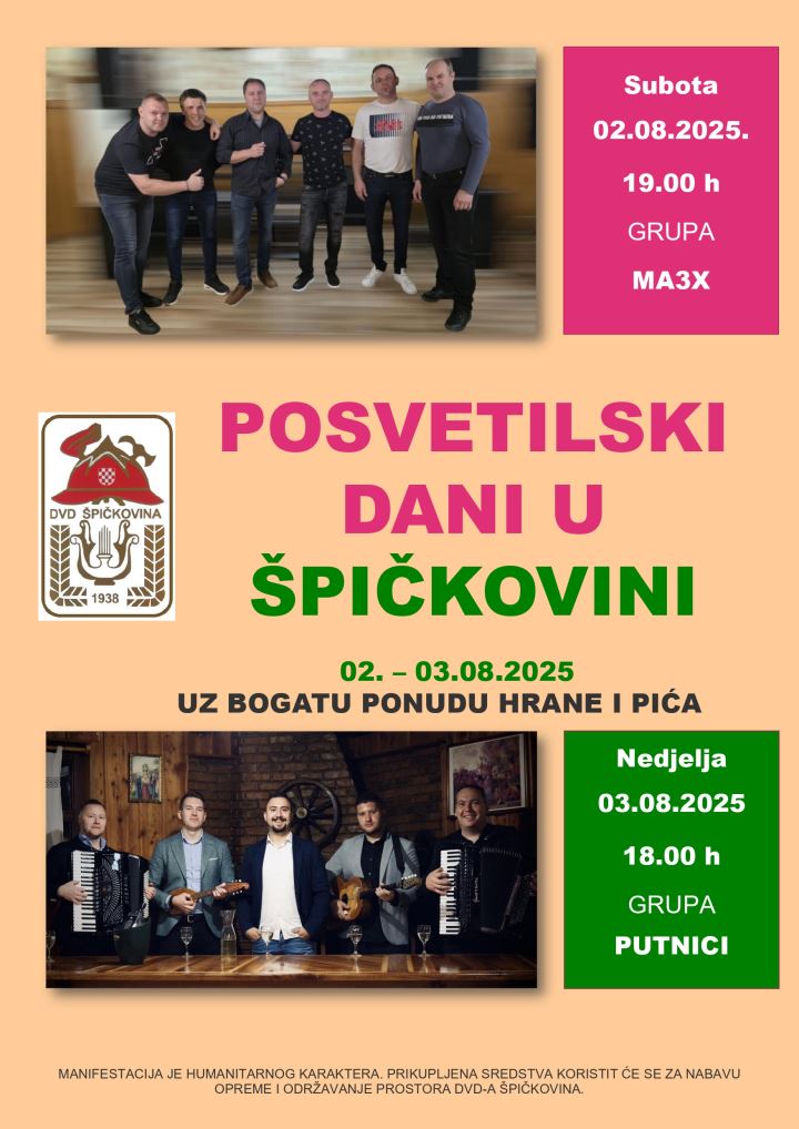 Dobrovoljno vatrogasno društvo Špičkovina već tradicionalno organizira Posvetilske dane te i ovom prilikom poziva sve zainteresirane na vrhunski vikend zabave.