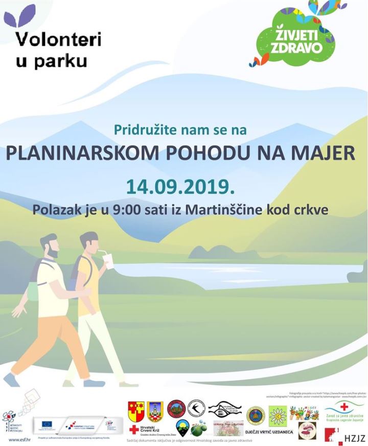 U subotu 14. rujna, u sklopu projekta 'Živjeti zdravo' Hrvatskog zavoda za javno zdravstvo, održat će se planinarski pohod na Majer.