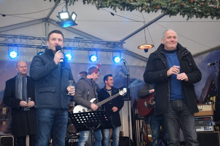 Manifestacija Advent u Mariji Bistrici završila jedanas, tradicionalnim dočekom u podne na središnjem bistričkom trgu. Program je počeo oko 11 sati, a atmosferu su zagrijali Nikolina Hižar i ''Full gas'', da bi 15 minuta do podneva na pozornicu izašli i glavni gosti - ''Barabe''.