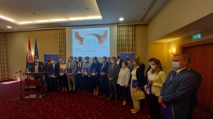 Župan Željko Kolar prisustvovao je danas svečanom uručivanju ugovora za Poziv „Osiguravanje školske prehrane za djecu u riziku od siromaštva (školska godina 2021.-2022.).“ u dvorani Adriatic Hotela International u Zagrebu.