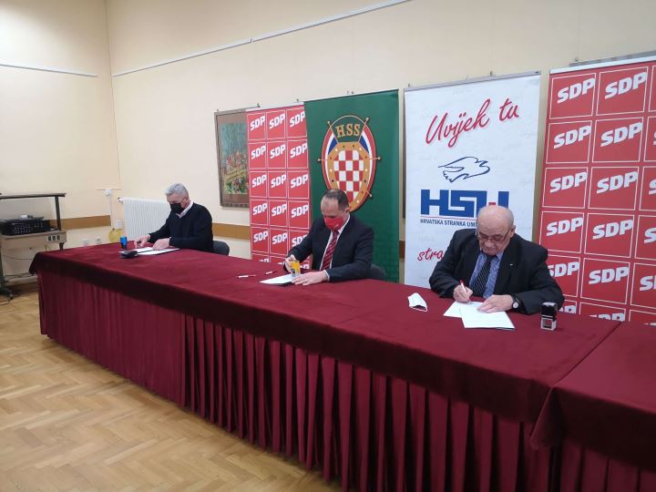 U Krapini je danas potpisan koalicijski sporazum o zajedničkom izlasku na predstojeće izbore za Županijsku skupštinu i podršku kandidatu za župana Željku Kolaru između stranaka SDP, HSS i HSU