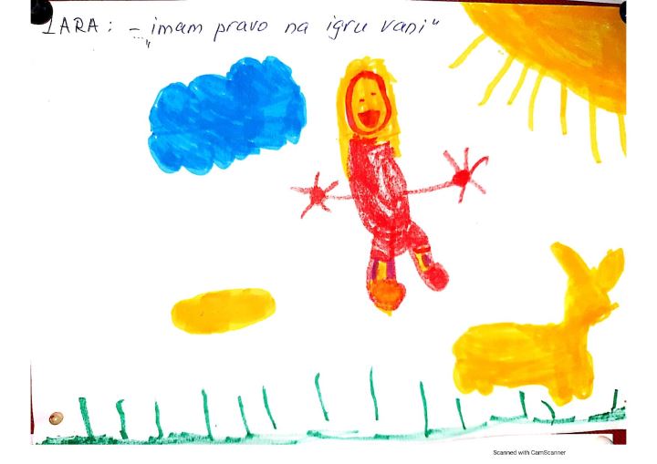 Djeca iz Dječjeg vrtića Bedekovčina imaju, baš kao i svako dijete, svoju maštu i svoje odgovore. Mila tako poručuje da dijete koje ne može hodati ima pravo da mu mama donese vode. I Luka kaže da dijete ima pravo da živi, Petar da djeca imaju pravo na igru, a Amalija poručuje odraslima da djeca imaju pravo odlučiti na koje more hoće ići. Luka je očito emotivno dijete jer poručuje da djeca imaju pravo na zagrljaj i imaju pravo biti zdrava i sretna ako su na Božić u bolnici. Dakako da se slažemo i s Antoniom koji kaže da se djeca imaju pravo igrati na zraku. Vrtićka djeca u Bedekovčini gledaju i kako se ruše stabla kako bi se tu nadogradio vrtić i to ih doista zabrinjava.