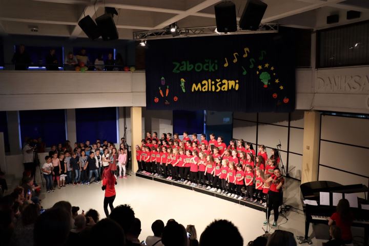 Pred prepunom dvoranom Osnovne škole K.Š. Gjalskog Zabočki mališani jučer su održali su svoj tradicionalni godišnji koncert posvećen mjesecu grada Zaboka.